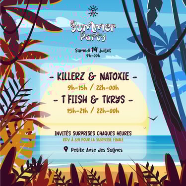 Tu trouveras ici une sélection de projets de flyers et de visuels pour les réseaux sociaux. Certains ont été réalisés pour des clients, d'autres sont des concepts créatifs que j’ai imaginés, comme par exemple Summer Party.